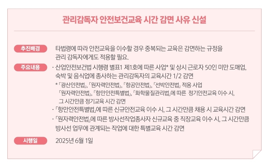 📌 2025년 7월부터! 관리감독자 안전보건교육 시간 감면 제도 달라진다~