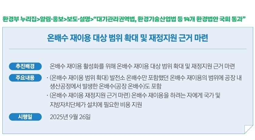 바로 ‘온배수 재이용 활성화 제도 개선’이에요.