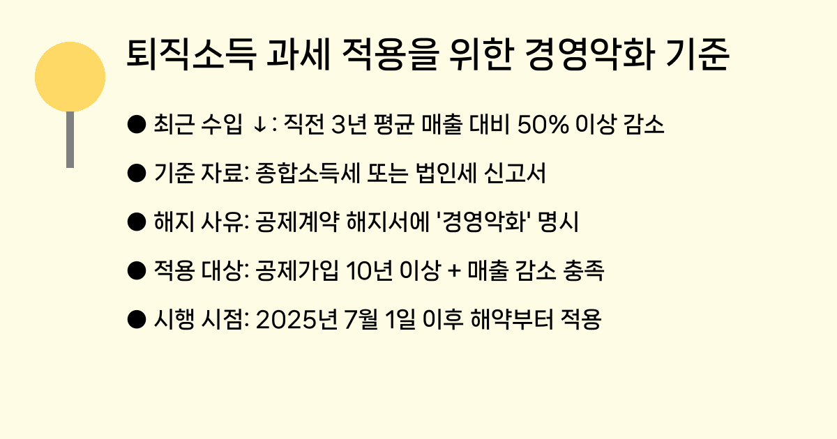 Q. 아직 10년 안 채웠는데 경영이 너무 힘들어요. 퇴직소득 안 되나요?
