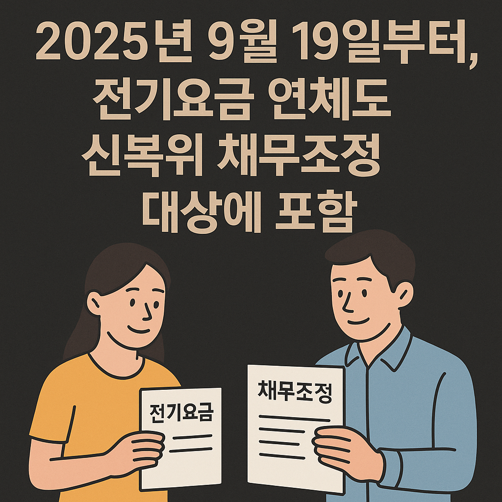 2025년 9월 19일부터, 전기요금 연체도 신복위 채무조정 대상에 포함됩니다!