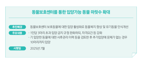 그런데 드디어! 2025년 하반기부터 입양 가능한 마릿수가 대폭 늘어난다는 소식이 나왔습니다.
