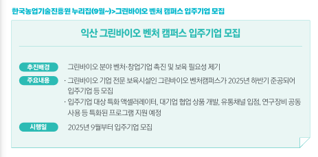바로 2025년 전북 익산에 ‘그린바이오 벤처 캠퍼스’가 준공되고, 9월부터 입주기업 모집을 시작한다는 소식이에요!